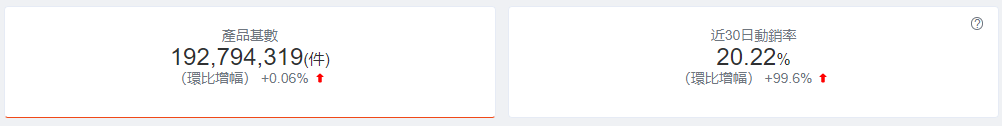 2021年11月前統計之 Shopee 產品分析數據顯示,Shopee 產品數共192,794,319(件),近30天動銷率20.22%,近30天銷售成長20.22%。